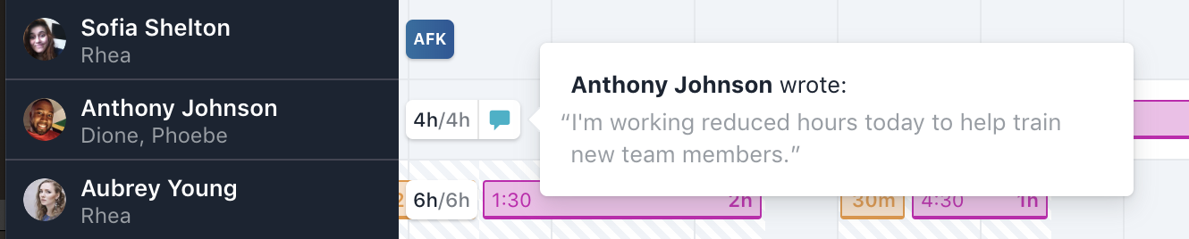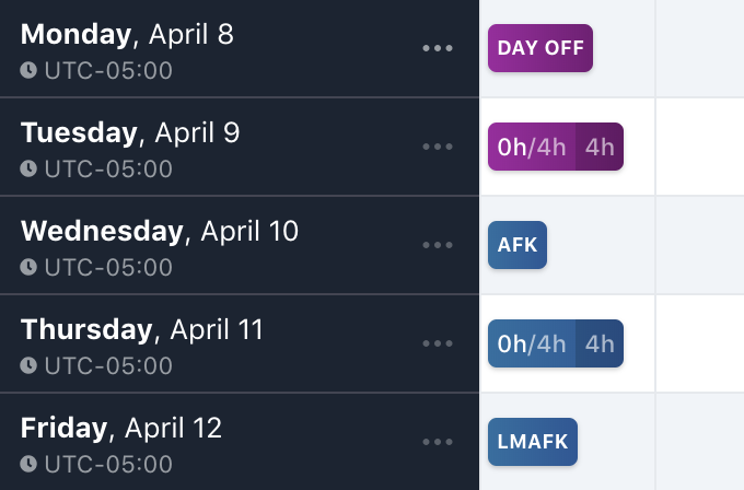AFK and Days Off are represented the same no matter where you see Day Details.